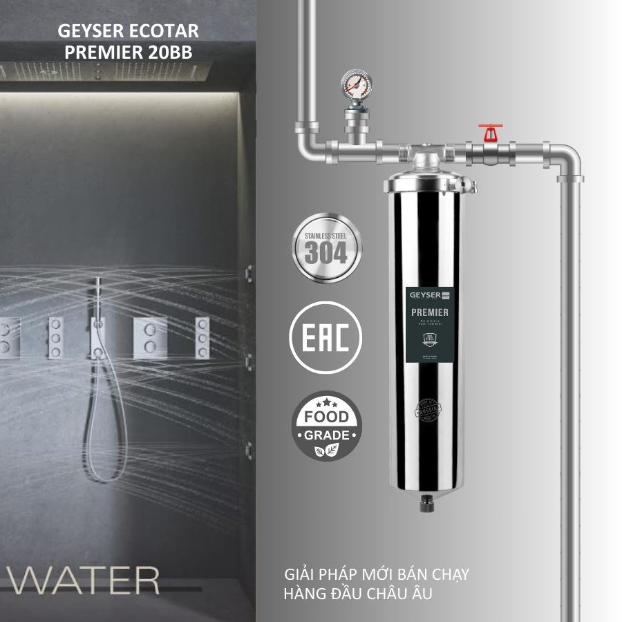 Bộ lọc nước sinh hoạt Geyser Ecotar Premier 20BB giải quyết triệt để vấn đề này. Sản phẩm ứng dụng công nghệ lọc tiên tiến hàng đầu thế giới, giúp nâng cao chất lượng nước sử dụng trong gia đình.