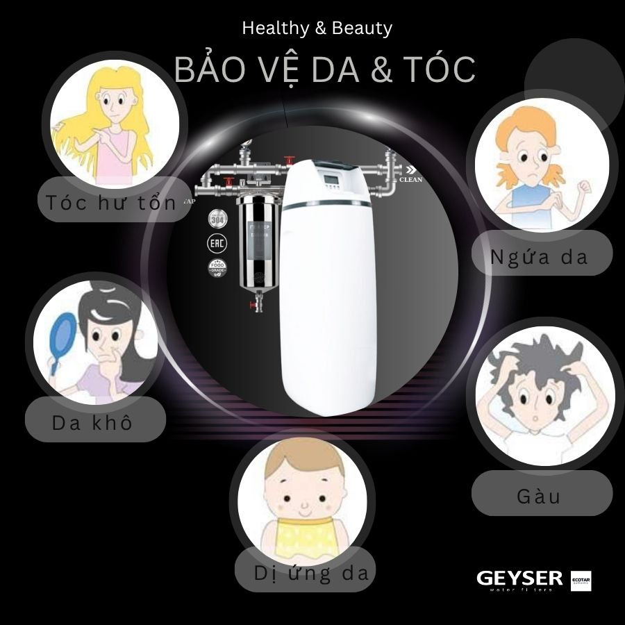 Lọc tổng đầu nguồn Geyser Ecotar 1F10S lợi ích cho da