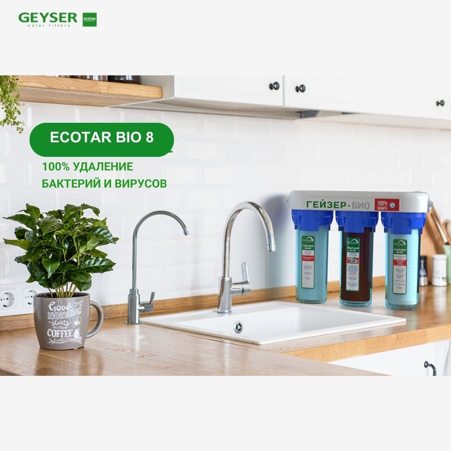 Máy lọc nước nano Geyser Ecotar Bio 8 là một trong những dòng máy lọc nước cao cấp nhất của Geyser Russia. Sản phẩm được thiết kế theo tiêu chuẩn châu Âu, phù hợp với tính chất nguồn nước Việt Nam và đáp ứng đầy đủ yêu cầu về an toàn – sức khỏe – khoáng chất tự nhiên. Model này sử dụng vật liệu lọc Aragon BIO độc quyền, có khả năng loại bỏ virus, vi khuẩn và tạp chất lên đến 100% nhưng vẫn giữ lại vi khoáng tốt cho cơ thể.