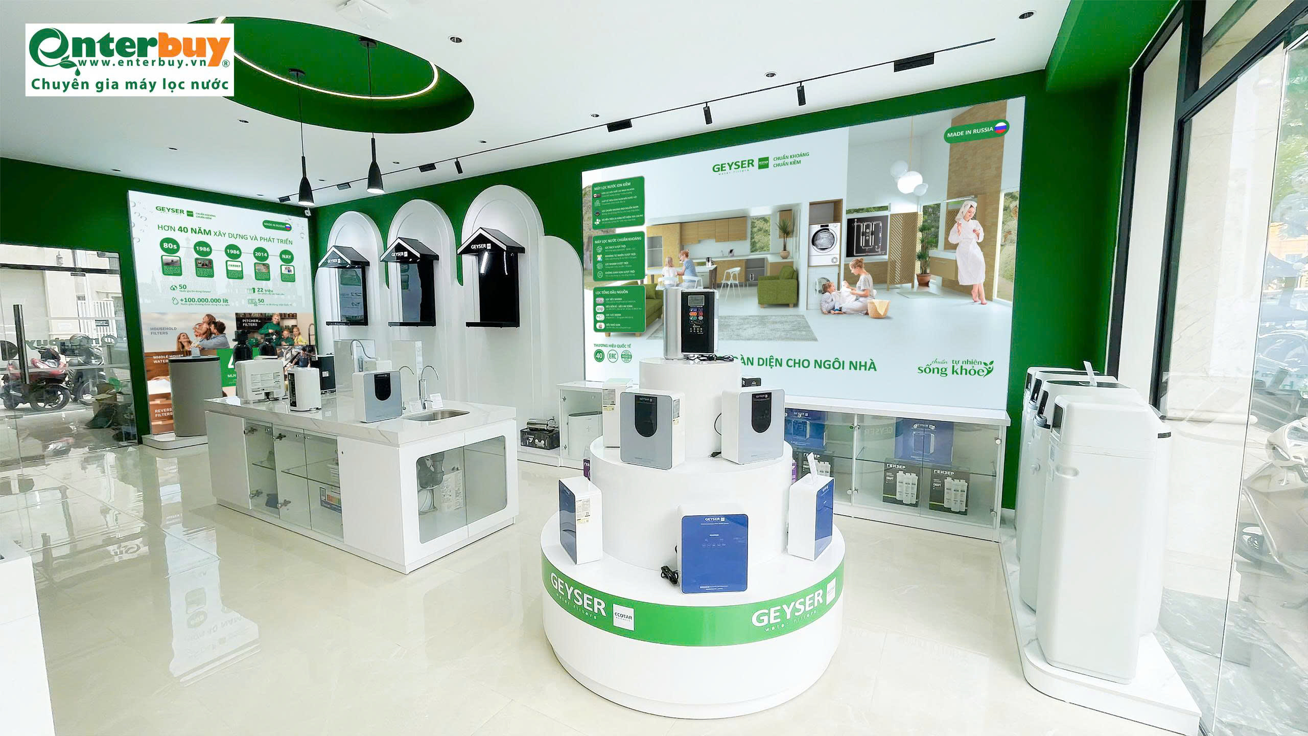 Showroom thiết kế theo phong cách mở, hiện đại, trưng bày đa dạng các dòng máy lọc nước Geyser Ecotar, ROMIX, Atica…